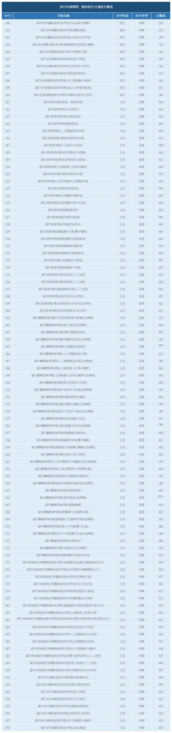 第二批次主要为深圳市内其他中等职业学校和技工院校的专业,招生数量大,专业选择丰富。