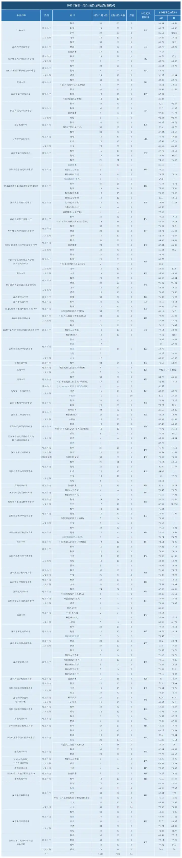 深圳2025年中考不同批次的招生计划和分数线已经公布,为了帮助广大考生和家长清晰了解中考录取情况,今天就对各批次分数线进行全面汇总和解读。数据内容来源于网络,仅供大家参考学习。